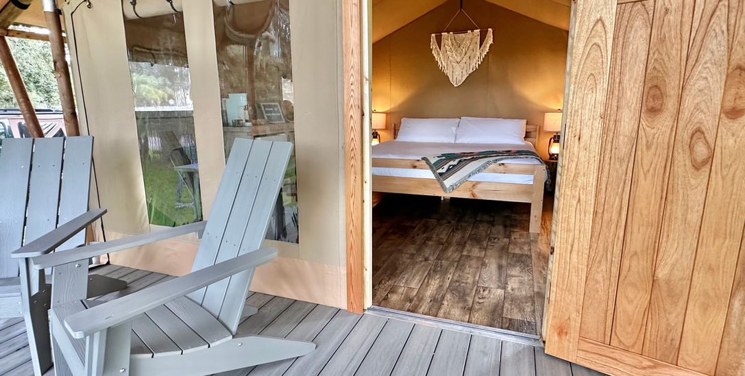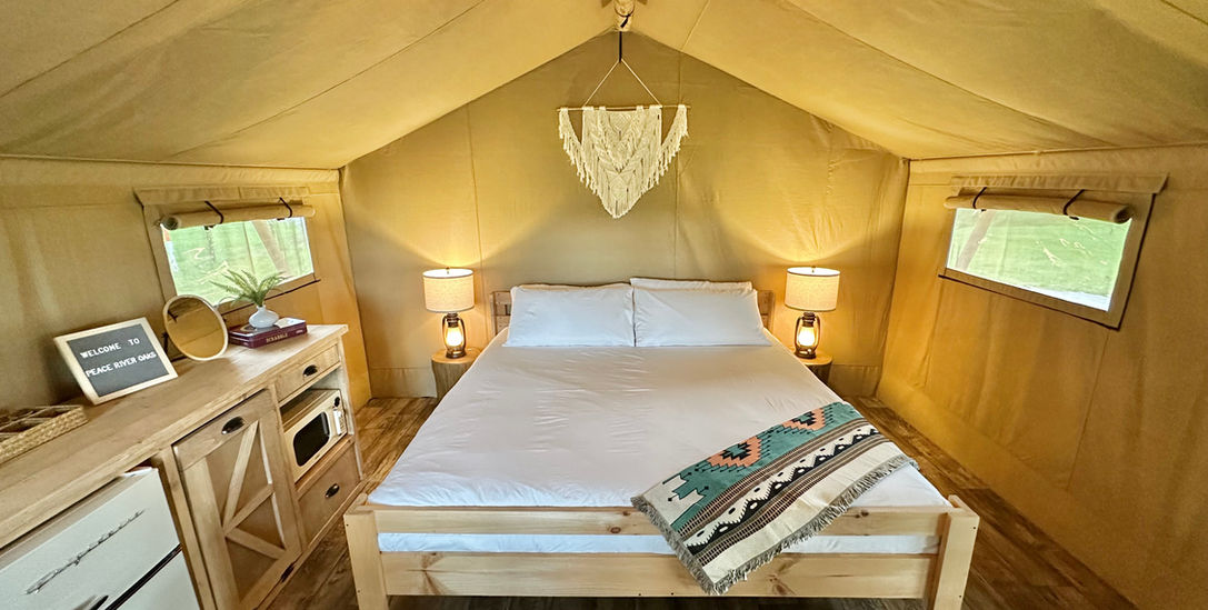 Fresh tents HAVE officially DROPPED! king-size comfort is now available at peace river oaks. Book our haven experience now!